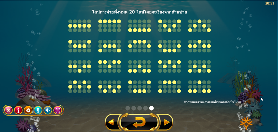 มันเป็นเกมรูปแบบกงล้อหมุน ที่ทำให้ผู้เล่นเข้าถึงเกมได้ง่ายดาย ภายในพื้นหลังของเกมเป็นบรรยากาศใต้ทะเลที่สวยใดงดงาม ฟองอากาศที่ลอยอยู่บนจอ โดยเดี๋ยวนี้ไม่ได้ทำแบบสุกเอาเผากินเหมือนเมื่อก่อน จุดสำคัญของเกมนี้คือการหมุนกงล้อสัญลักษณ์เพื่อให้ตรงกับกติกาของเกมที่กำหนดให้ เช่น2×2 , 3×3 หรือ 4×4 เมื่อเล่นถูกเงื่อนไขจะได้รับเงินรางวัลตามรูปแบบที่กำหนด โดยอาจจะสุ่มให้ถูกเงื่อนไข 5ถึง 6เงื่อนไข (ใจดีจริงๆ) ในการหมุนแต่ละครั้ง ได้เงินมาฟรี แบบโชคมาพารวย โอ้ยรวยๆ จริงๆครับ อยากบอกว่าเป็นเกมที่ตามหามางานแล้ว สำหรับ การเริ่มสามารถแทงเริ่มต้นก่อนได้ แล้วค่อยๆเพิ่มเงินเดิมพันได้ ผจก.ไม่ว่าแน่นะวิ..............รวยๆครับพี่น้อง