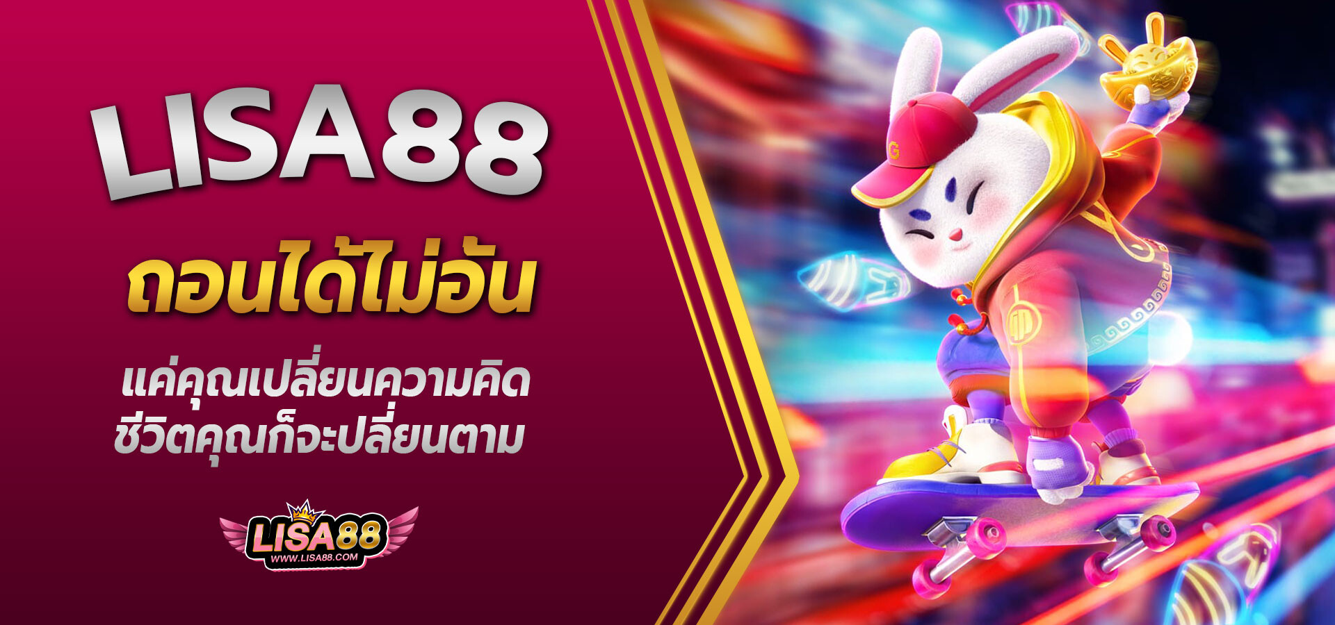 แค่คุณเปลี่ยนความคิดชีวิตคุณก็จะปลี่ยนตาม เพียงแค่คุณลองเปิดใจให้กับ Lisa68 เราพร้อมนำพาความสนุก และ ความร่ำรวยมาสู่อ้อมอกของท่าน ยิ่งคุณเป็นคนที่มีเงินทุนน้อยเพียงแค่หลักสิบ รับรองว่าเมื่อคุณเข้ามารับโปรโมชั่นสุดพิเสษนี้ คุณจะสามารถเดิมพันได้ยาวนานขึ้น แถมยังเพิ่มโอกาสการได้ลุ้นโบนัสและแจ็คพอตที่มากขึ้น และ คุณสามารถถอนได้ทุกเวลาที่ต้องการ ไม่มีการล็อคใดๆทั้งสิ้น เรารับประกันความพึงพอใจให้กับทุกท่านที่เข้ามาเป็นครอบครัวเดียวกับเรา Lisa68 family